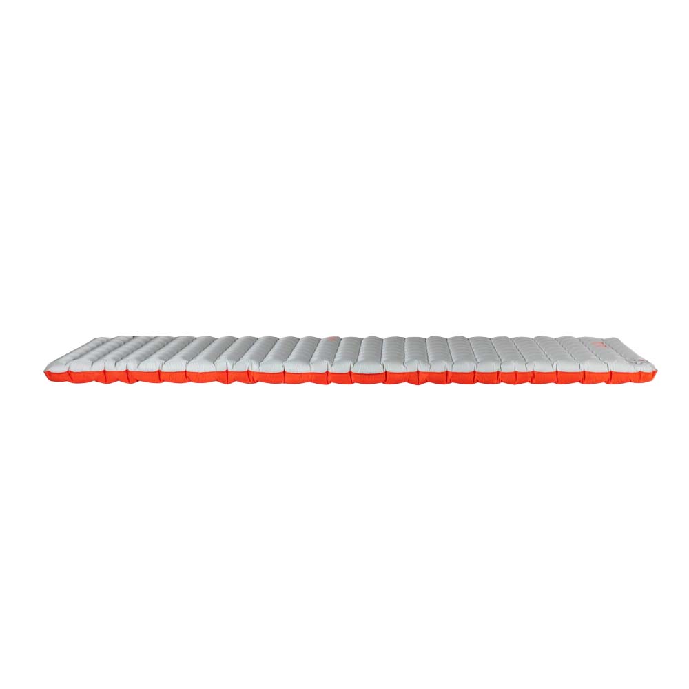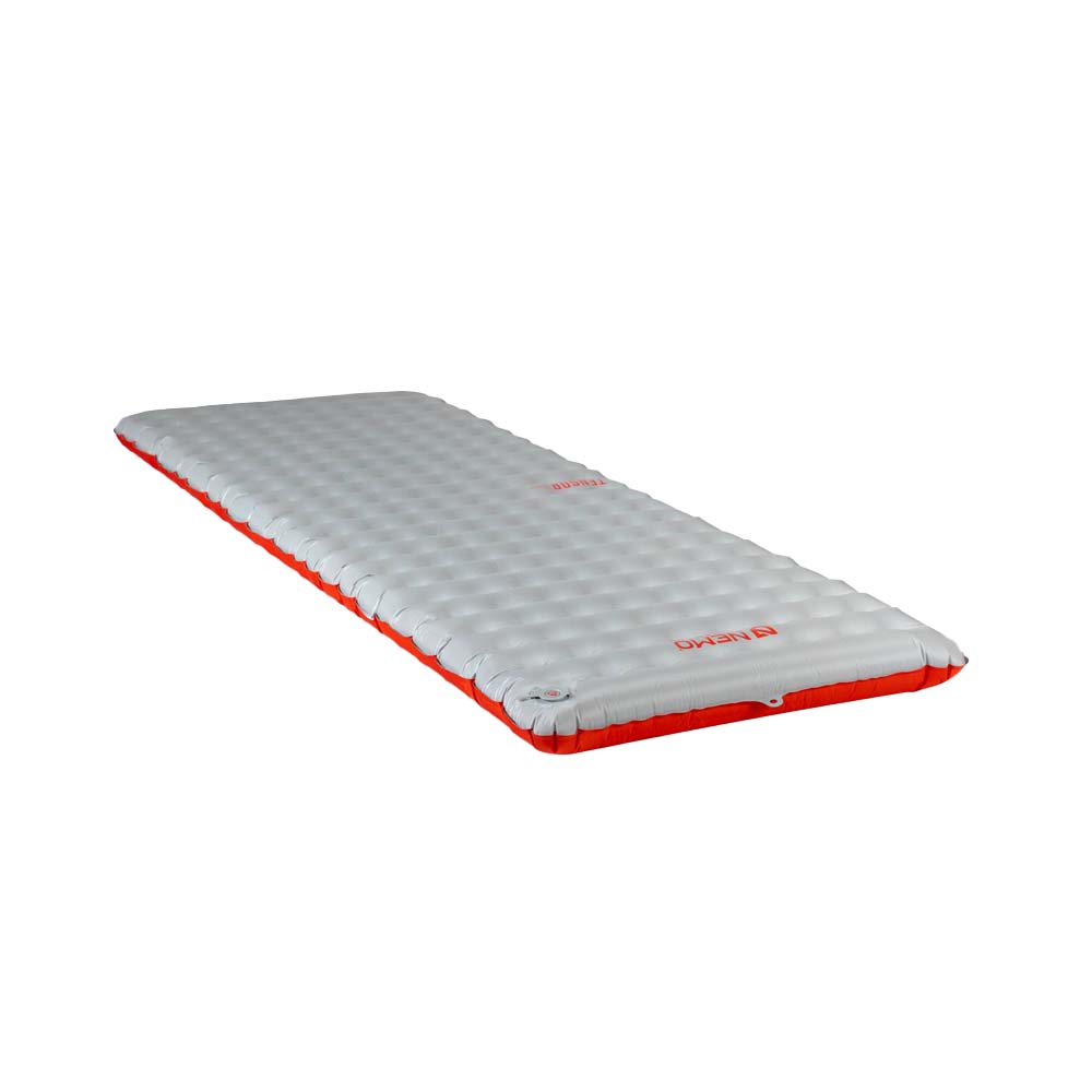 The pad’s interior features NEMO’s proprietary Spaceframe™ baffle design, which utilizes low-stretch fabric trusses to create stable support and offer just the right amount of give — all while avoiding any wobbly waterbed feeling. Inside each baffle are two suspended layers of ultra-thin, metallized Thermal Mirror™ film, which efficiently reflect body heat and contribute to the pad’s overall 5.4 R-value. The layers’ clever floating construction eliminates the crinkling, crunchy sound that many insulated air pads are known for, earning Tensor a reputation for peace and quiet on the trail.