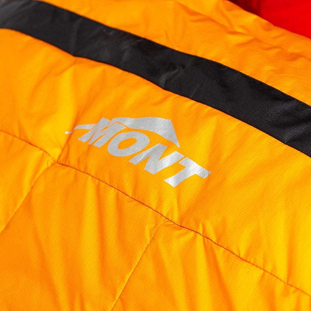 The Expedition 8000 XT sleeping bags utilise the most advanced features to achieve maximum warmth even in the most severe extreme-cold conditions: Hydronaute XT laminated membrane fabric protects from exterior moisture while rapidly removing internal moisture vapour, vertical chest baffles lock down insulation in place for optimal warmth, a close fitting down filled hood with Hydronaute XT lining insulates your head while protecting down from moisture, a large boxfoot foot section with Hydronaute XT lining protects down from snow on your feet or booties, Mont's unique Cordless Collar System wraps comfortably around your shoulders and insulates better than traditional corded collars, and interlocking down-filled draught tubes protect from cold air creeping through the zip.
