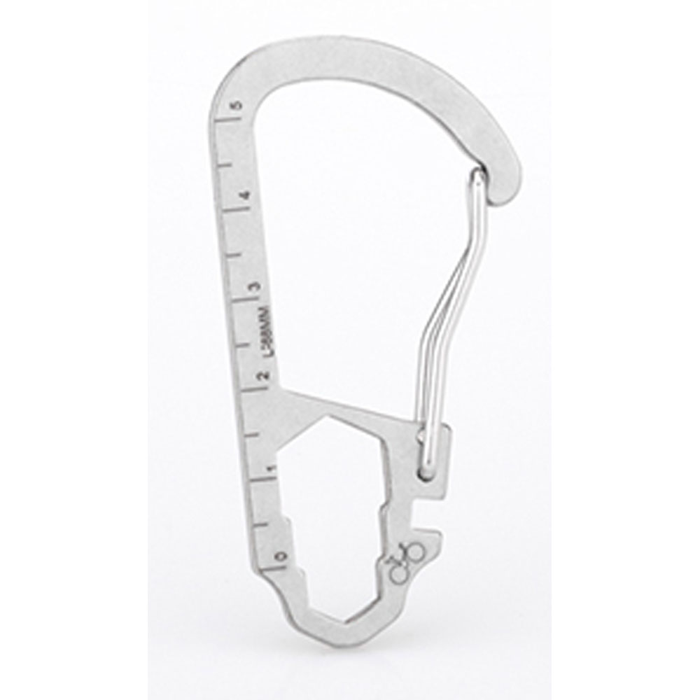 A Titanium Keychain Tool for everyday tasks. Featuring a ruler, spoke wrench, and assorted spanner/wrench fittings.