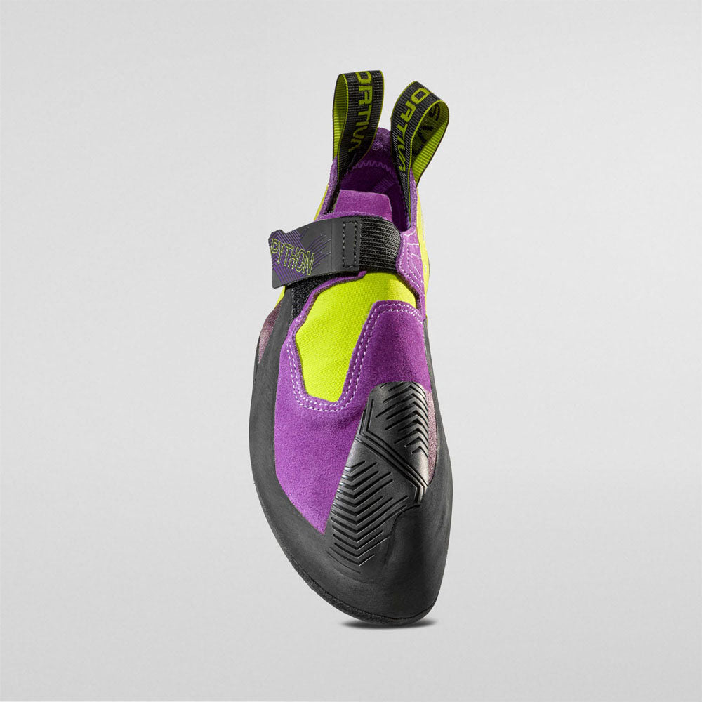 The La Sportiva Python is a snug fitting shoe that uses an innovative closing solution thanks to a hook and loop closure. This closure blocks the foot in place during heel hooks and prevents the shoe from slipping off during reverse holds and heel hooks, even in the most extreme situations.
