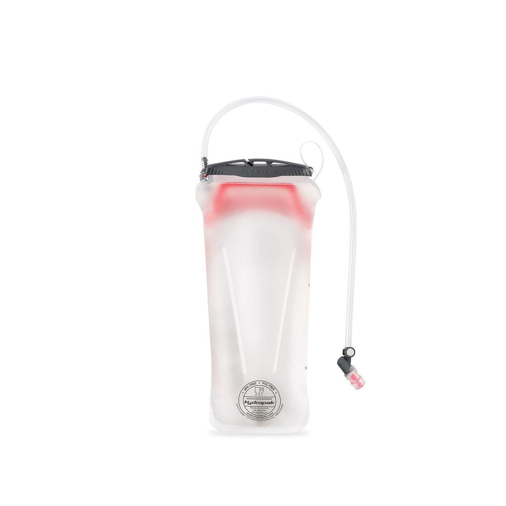 Twin-welded chevron baffles stabilise the water and maintain a flat profile. The streamlined design allows for easy loading into internal hydration sleeves. Thoughtful design makes filling, cleaning and most importantly staying hydrated on the trail easier than ever.