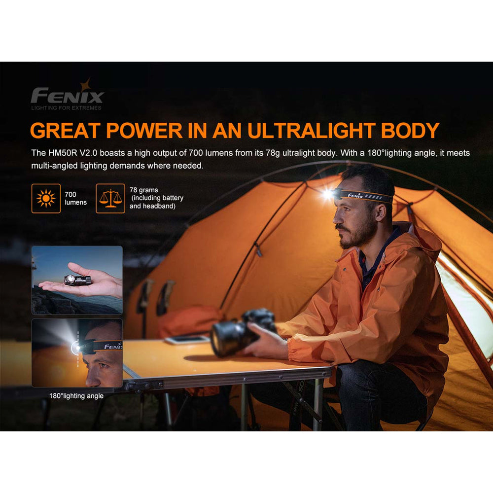 The Fenix HM50R V2.0, has everything you have come to love, plus added performance and new features. Super small and lightweight, this headlamp can now blast a maximum of 700 lumens 377ft. The included 16340 rechargeable Lithium-Ion battery is USB Type-C rechargeable, and the headlamp includes a battery level indicator so you will always know the battery’s status.