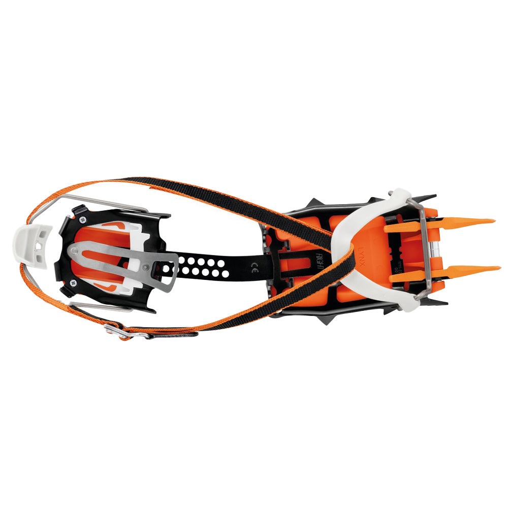 Versatility at its finest! With modular front points (long or short mono-point, dual-point, or asymmetrical dual-point), the LYNX crampons are designed to take on difficult climbs, snow couloirs, ice and mixed climbing.